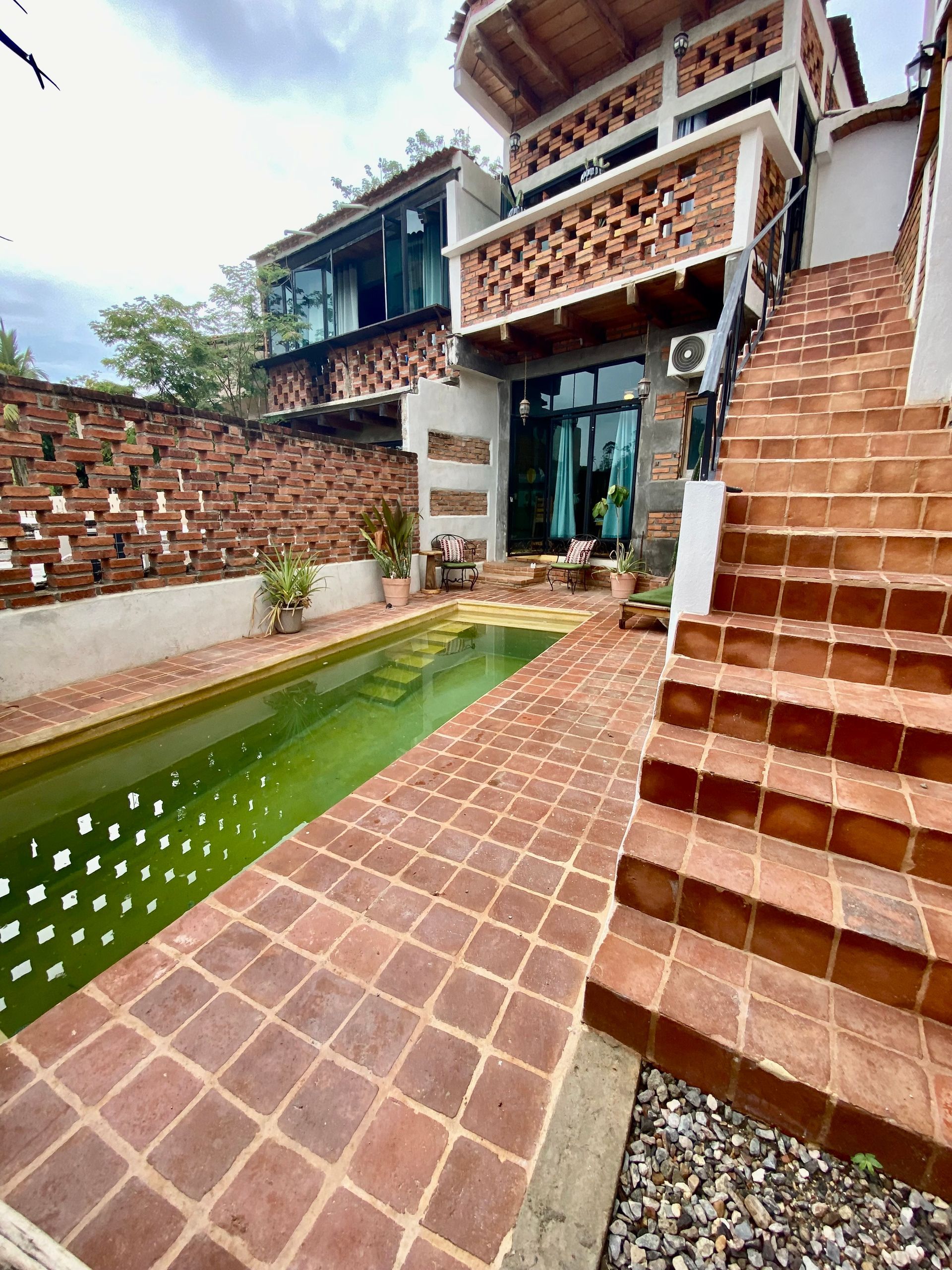 The Lolo is a two story apartment with a private pool. The front entrance leads