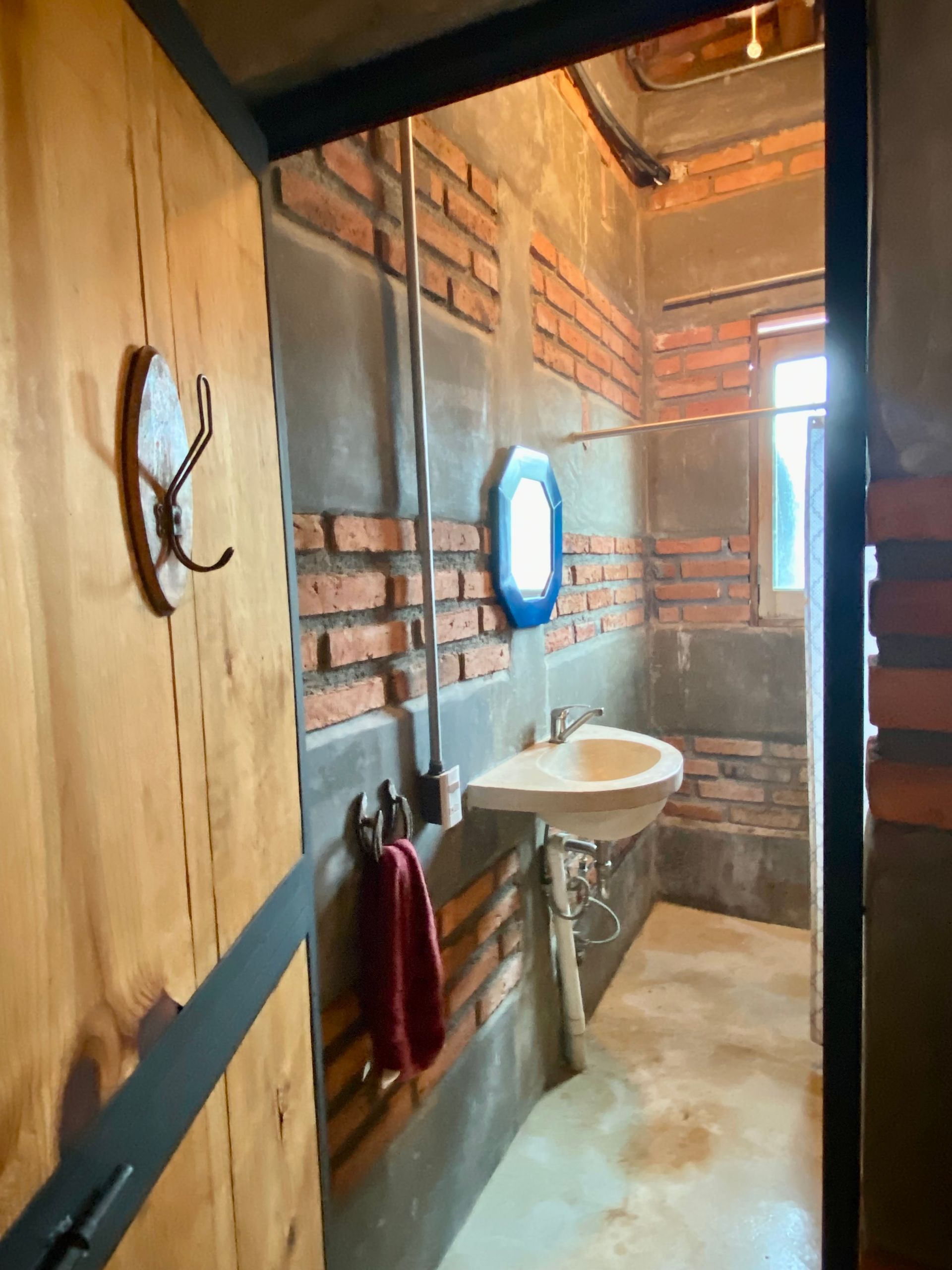 with a king sized bed, and air conditioning if needed. There is a private bathroom here