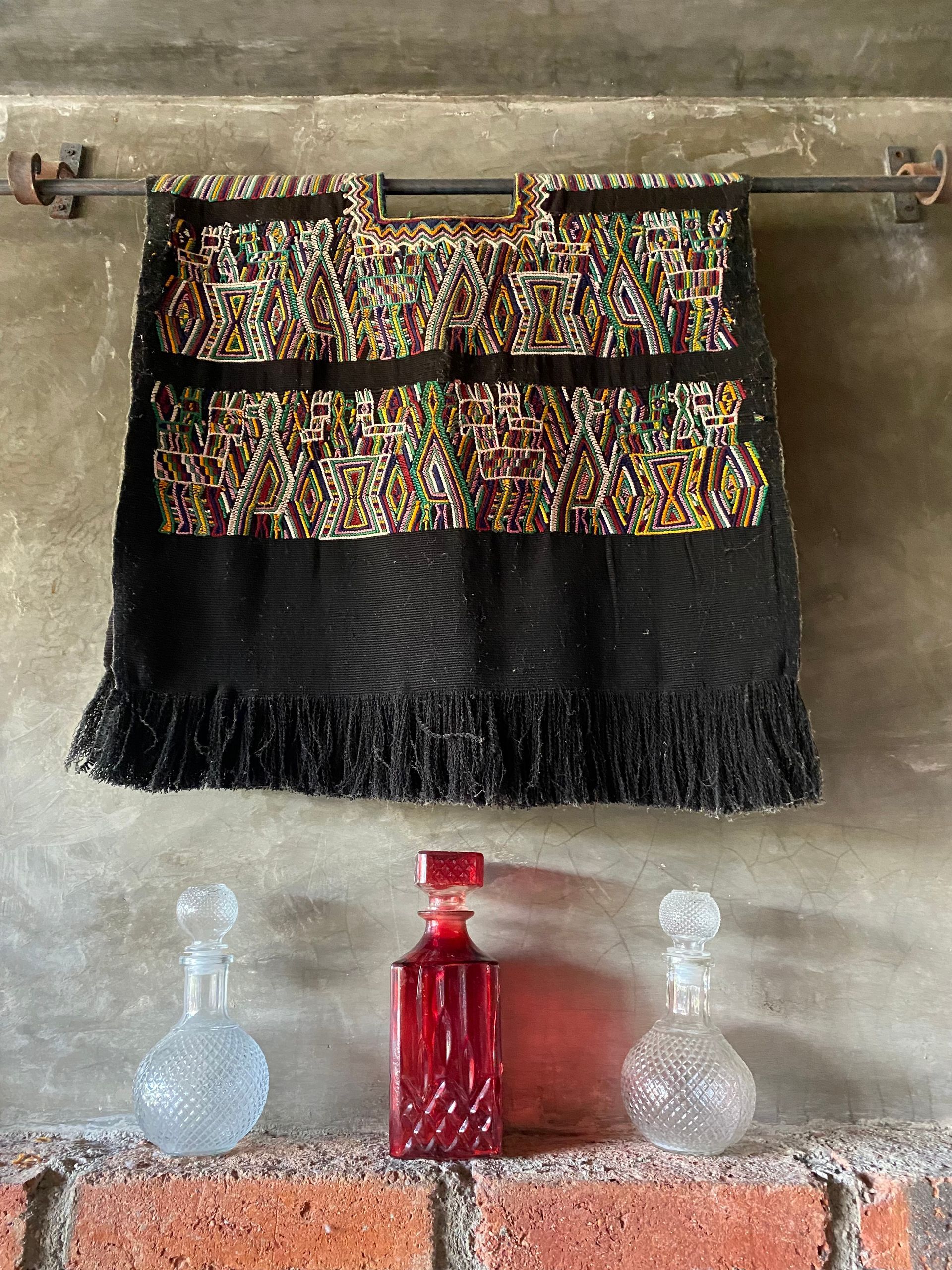cotton sheets and beautiful Mexican bedspread is in the back of